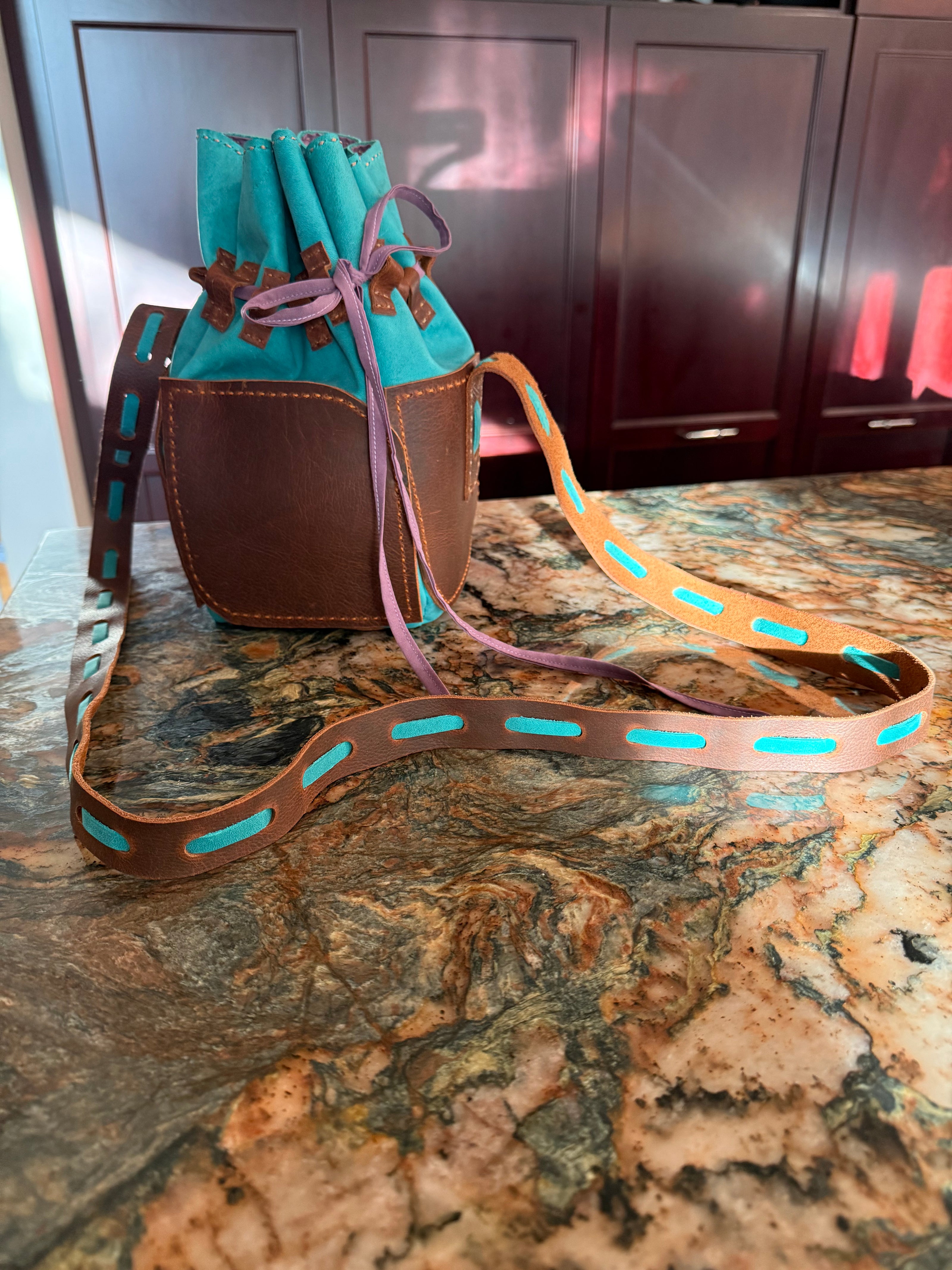 Hand Made Gather-top Leather Purse ~ Opens like a Flower!