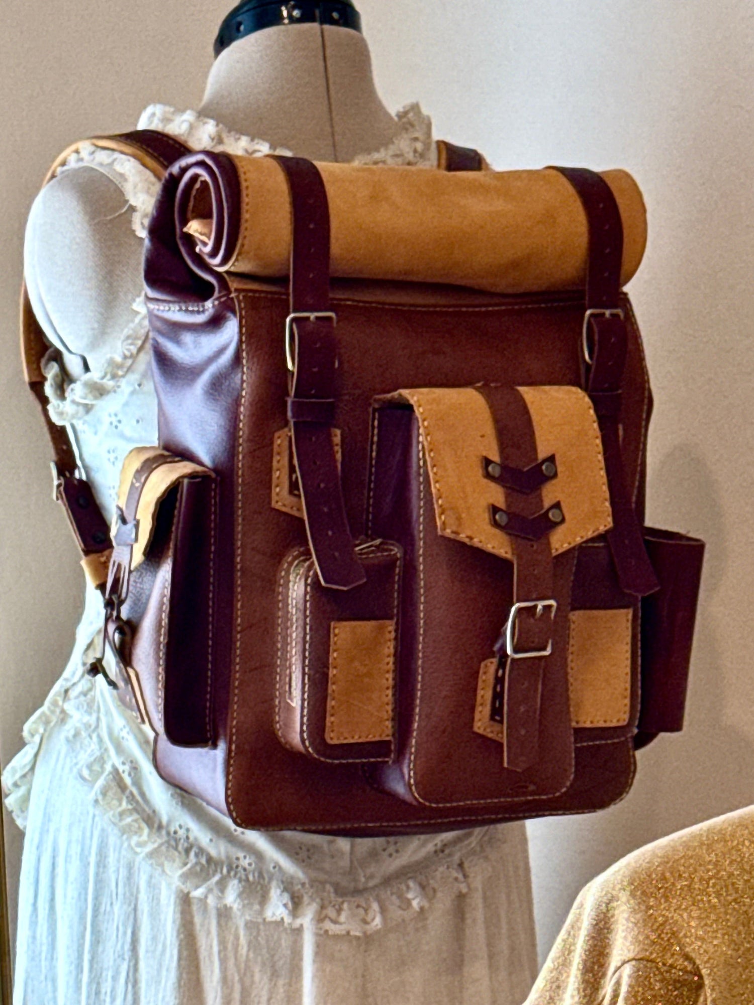Chocolate Brown Hand-Sewn Backpack with Floral Lining